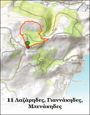 11 – Λαζάρηδες – Γιαννάκηδες – Μπενάκηδες 3,5 χλμ. / 1 ώρες 45 λεπτάΒαθμός δυσκολίας: εύκολη / μέτρια διαδρομή Εκκίνηση: Λαζάρηδες…